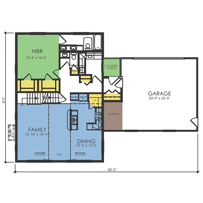 A part of our Wausau Originals, the Hidden Glen floor plan features 3 bedrooms and 2.5 bathrooms with a foot print of 58x42 feet and 1808 total square feet of living space. Floor Plan #WO650